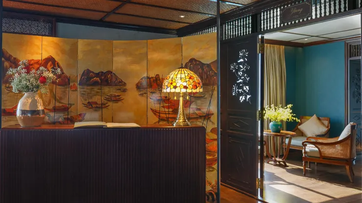 - Thiết kế độc đáo và ấn tượng: Violet Cruise thuộc hạng mục du thuyền 5 sao hạng sang của Heritage Cruise. Với sự kết hợp tinh tế giữa kiến trúc Pháp - Đông Dương, đây là một tác phẩm nghệ thuật trên biển với vẻ đẹp hoài cổ và sang trọng. Mỗi chi tiết từ sàn ốp đến đồ trang trí thủ công mỹ nghệ đều được chăm chút, tạo cảm giác thoải mái và an tâm cho du khách.