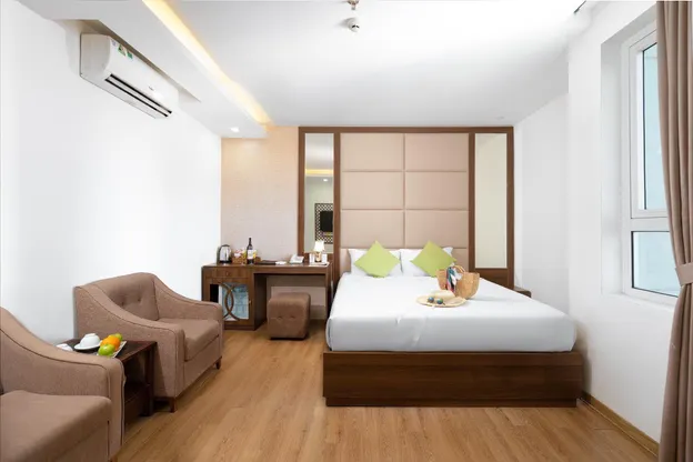 Chúng tôi tự hào cung cấp một nơi lý tưởng để thư giãn và tận hưởng niềm vui tại thành phố Đà Nẵng. Khách Sạn Pariat River Front Đà Nẵng đạt tiêu chuẩn cao với các dịch vụ tiện nghi như wifi miễn phí, nước uống miễn phí... để đảm bảo bạn có một trải nghiệm thoải mái tối đa. Phòng của chúng tôi được thiết kế thanh lịch và sang trọng, đảm bảo bạn có mọi thứ cần thiết để có kỳ nghỉ tuyệt vời.