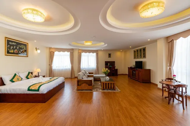 Khách sạn đạt tiêu chuẩn 4 sao với nhiều tiện ích cho du khách. Khí hậu mát mẻ, khung cảnh núi rừng và thung lũng thơ mộng tạo nên một không gian nghỉ dưỡng tuyệt đẹp. Tại đây, bạn có trạm dừng chân phong cách quốc tế dưới sảnh để thực hiện thủ tục nhanh chóng. Nhà hàng của chúng tôi phục vụ các món ăn đặc sản ngon mắt. Ngoài ra, bạn có thể rèn luyện sức khỏe tại khu thể thao và tận hưởng nhiều tiện ích khác như lễ tân 24/7, spa, đưa đón sân bay, quầy bar, bồn tắm thủy lực, phòng tắm hơi, và nhiều tiện nghi khác.
