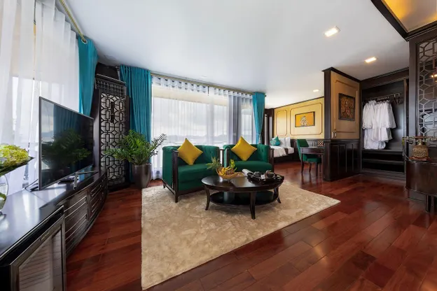 Du thuyền có tổng cộng 27 phòng đẹp mắt, nơi bạn có thể tận hưởng sự thoải mái và tiện nghi. Mỗi phòng được trang bị phòng tắm riêng, thảm trải sàn, khăn trải giường, tủ khóa, và gương. Chúng tôi đánh giá cao đối với mọi loại khách hàng, bao gồm gia đình, doanh nhân và cặp đôi.