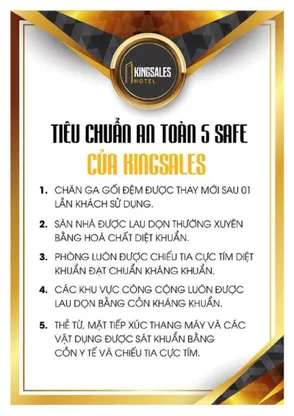 Chào mừng quý khách đến với Khách sạn Kingsales - nơi lựa chọn lý tưởng cho kỳ nghỉ vui vẻ và thư giãn. Chúng tôi tự hào là một địa điểm lưu trú đạt tiêu chuẩn với các dịch vụ và tiện ích hàng đầu, bao gồm Wi-Fi miễn phí và đồ uống miễn phí, để mang đến cho quý khách trải nghiệm tối ưu và thoải mái tuyệt vời.