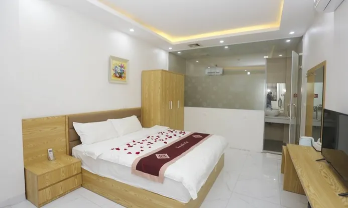 Hãy đặt chân đến Khách sạn Trường Sơn, nơi chỉ cách trung tâm thành phố Hà Nội 6km và có vị trí thuận tiện để thăm quan các điểm đến nổi tiếng như hồ Hoàn Kiếm, hồ Tây và Quốc Tử Giám. Chúng tôi tự hào mang đến cho bạn phòng nghỉ rộng rãi với diện tích từ 25m2 đến 50m2 tại các tầng khác nhau của khách sạn. Tại đây, bạn có thể tận hưởng cảnh về đêm của thành phố qua cửa sổ phòng khách sạn. Mọi tiện ích hiện đại như TV LCD, tủ lạnh mini và nhiều tiện nghi khác đều được chúng tôi trang bị đầy đủ. Ngoài ra, một số phòng còn được trang bị bồn tắm để bạn có thể thư giãn sau một ngày dài và tạo nên sự hài lòng tuyệt đối khi lưu trú tại khách sạn.