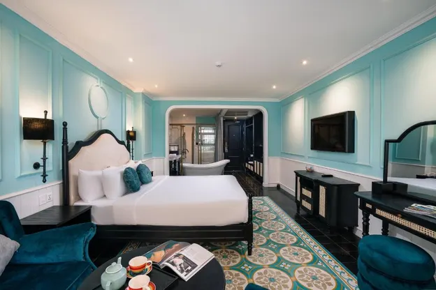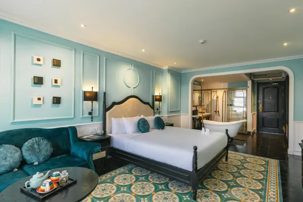 - Phòng tiện nghi với ba tông màu Rose, Navy và Amber, và một số phòng được trang bị bếp riêng.