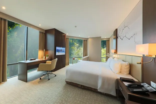 Phòng nghỉ tại Grand Vista Hà Nội đã được trang bị đầy đủ tiện nghi tiện lợi. Mỗi phòng đều có máy điều hòa, truyền hình vệ tinh màn hình phẳng, ấm đun nước, vòi sen thư giãn, máy sấy tóc và khu vực làm việc thuận tiện. Không gian phòng còn được bổ sung bởi tủ quần áo và phòng tắm riêng, mang đến sự riêng tư và thoải mái tối đa cho bạn.