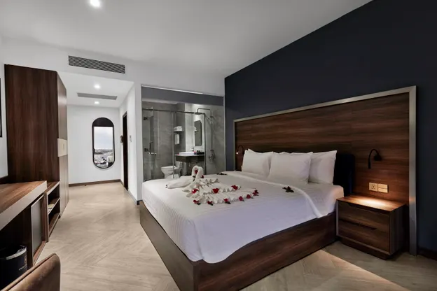 - Phòng nghỉ với tiện nghi bàn làm việc, TV màn hình phẳng và phòng tắm riêng