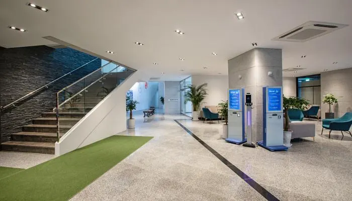 The self check-in machines are located on the first floor.