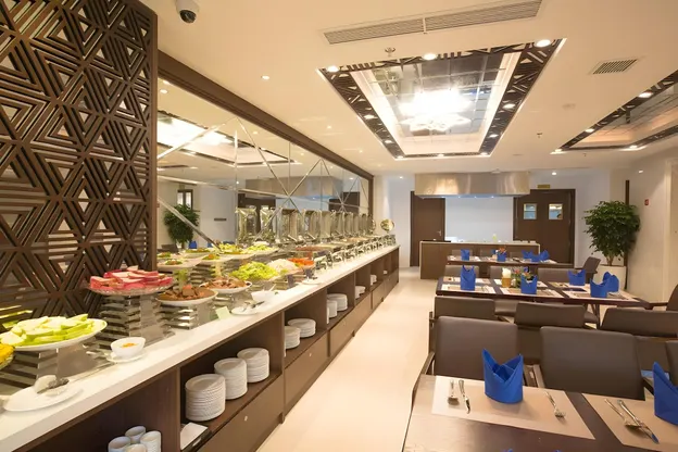 - Nhà hàng tại tầng 2 với sức chứa hơn 100 khách, phục vụ buffet sáng hàng ngày và alacarte từ 14h00-21h00.