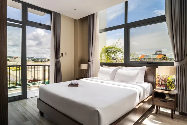 Nhìn ra thung lũng xanh mướt, bạn có thể tận hưởng vẻ đẹp thơ mộng của Đà Lạt qua những khoảnh khắc bình minh và hoàng hôn. Chỉ cách trung tâm chợ Đà Lạt vài phút taxi, khách sạn là điểm xuất phát thuận tiện cho việc khám phá ẩm thực địa phương và tham quan các điểm nổi tiếng như Thung Lũng Tình Yêu, Đồi Mộng Mơ, Rừng Hoa Đà Lạt, Hồ Xuân Hương và Vườn Hoa Thành Phố.