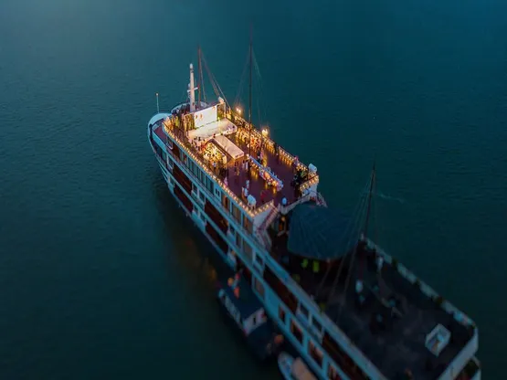- 21:00: Tham gia các hoạt động thú vị như câu mực, hát karaoke, hoặc ngắm cảnh vịnh về đêm tại Sundeck tầng 3 của du thuyền.