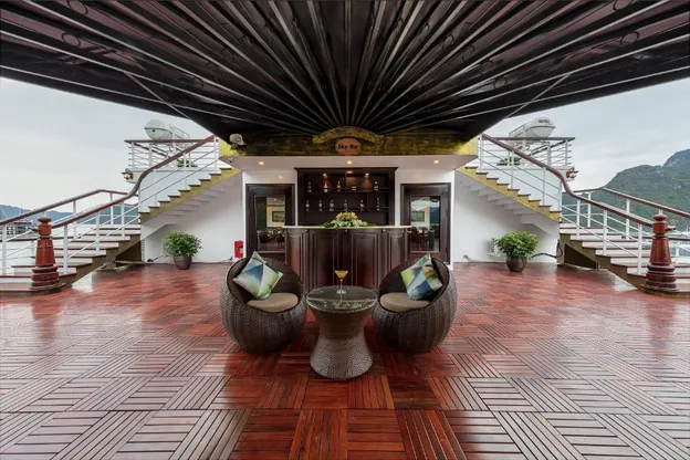 - 17:30 - 19:00: Lựa chọn dịch vụ mát-xa thư giãn hoặc thư giãn trong bồn Jacuzzi khi ngắm hoàng hôn trên vịnh Lan Hạ và thưởng thức cocktail chất lượng 5 sao.