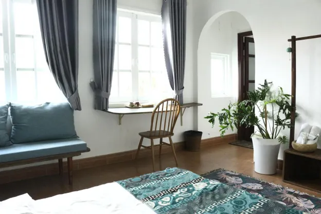 Các phòng được trang trí chủ yếu bằng màu xanh, mang lại cảm giác nhẹ nhàng và thoải mái. Tất cả các phòng đều được trang bị đầy đủ tiện nghi và có không gian rộng rãi, giúp bạn thư giãn và tận hưởng bình yên của Đà Lạt.