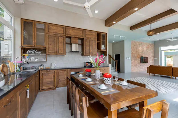 Villa được trang bị đầy đủ vật dụng nấu nướng, bao gồm cả lò nướng BBQ để bạn thỏa sức nấu ăn. Vị trí gần biển cho phép bạn dễ dàng dạo biển, thư giãn và tận hưởng những khoảnh khắc đẹp của hoàng hôn và bình minh.
