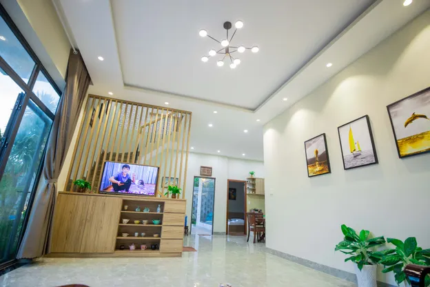 - Villa được thiết kế theo không gian mở, hòa hợp và gần gũi với thiên nhiên, đồng thời mang phong cách xinh xắn và hiện đại.