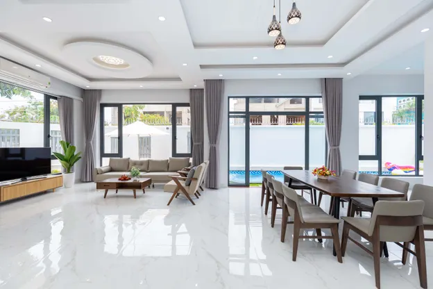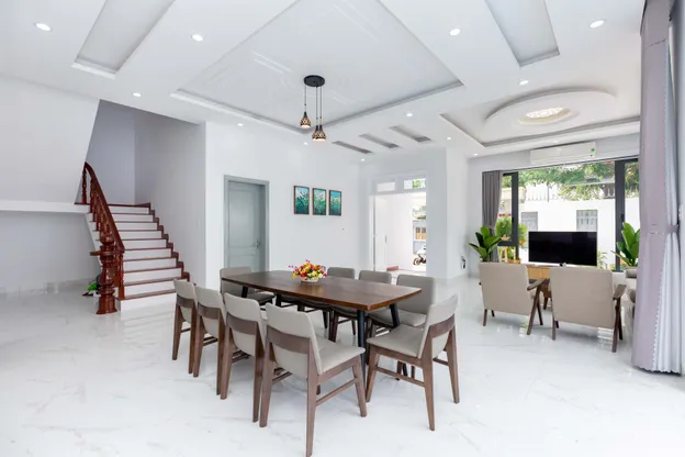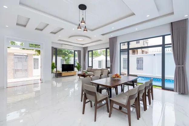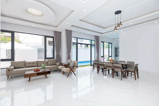 - Villa được thiết kế theo không gian mở, hòa hợp và gần gũi với thiên nhiên, đồng thời mang phong cách xinh xắn và hiện đại.