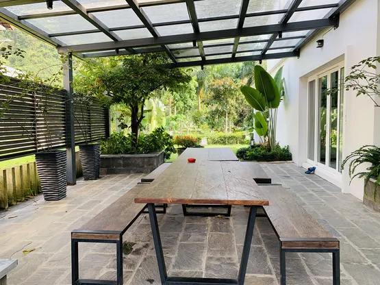 - Khu vườn rộng lớn với diện tích lên đến 800m2, tạo ra không gian xanh mát và thoải mái.