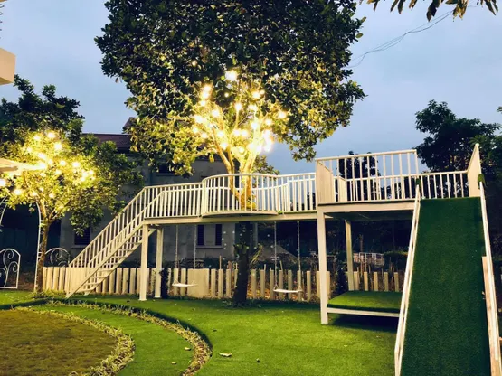Villa được trang bị một hệ thống nhà cây cầu trượt xích đu siêu ấn tượng cùng với sân vườn BBQ rộng lớn, có sức chứa lên đến 30 người. Với vườn hồng cổ lâu rộng 1000m2 bên bờ suối, An Villa 1 được xem là một trong những Villa có view cảnh quan đẹp nhất tại Xanh Villas Resort.