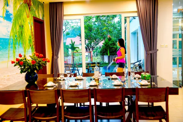 Villa tiêu chuẩn ở được 12 người lớn và 4 trẻ em. Ngoài tiêu chuẩn, phụ thu cho người lớn là 200,000 VNĐ/người, trẻ em 150,000 VNĐ/người (miễn phí cho trẻ dưới 2 tuổi).
