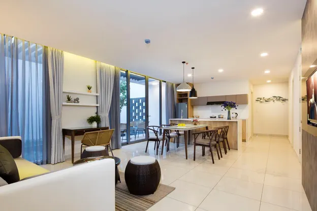 - Tầng 1: Phòng khách sang trọng và ấm áp, 01 phòng ngủ Executive Suite, 2 toilet riêng biệt (01 trong phòng ngủ và 01 ở phòng khách).