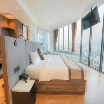 Khách Sạn Meria Quy Nhơn tự hào là nơi cung cấp dịch vụ lưu trú lý tưởng cho sự vui vẻ và thư giãn của quý khách. Với tiêu chuẩn nghỉ dưỡng hàng đầu, chúng tôi mang đến không gian thoải mái với các tiện nghi tiện lợi như wifi miễn phí, nước uống miễn phí và nhiều dịch vụ khác.