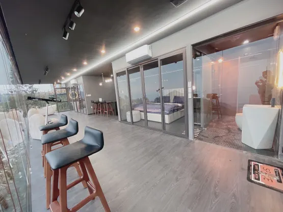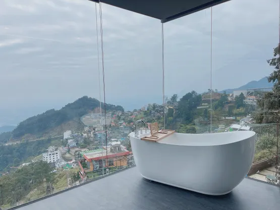 Villa này có thiết kế ấn tượng với 2 phòng ngủ khép kín và tiện nghi hiện đại. Có giường lớn với kích thước 1,8m x 2m, điều hòa 2 chiều tiện lợi trong mỗi phòng ngủ. Villa cũng có một gian bếp mini ấm cúng với bàn đảo Bar sang trọng. Bồn tắm sục massage được trang trí ngoại thất giúp bạn trải nghiệm cảm giác "tắm trên mây". Từ villa, bạn có thể chiêm ngưỡng toàn cảnh vẻ đẹp của Tam Đảo. Ngoài ra, chúng tôi tặng vé khu checkin vườn dâu Lala Land Tam Đảo và vé khu checkin "Vùng Đất Mơ Màng" Tam Đảo. Khách cũng có thể mượn xe máy miễn phí (nếu có nhu cầu) và xem show ca nhạc tại "Mơ Màng Show+". Villa chia sẻ khuôn viên với toàn bộ nội khu 90s Homestay Tam Đảo, bao gồm bể bơi, các góc check-in, quầy cà phê và nhà hàng.