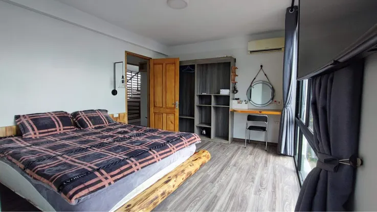 Omi Village có 4 phòng ngủ, trong đó có 3 phòng tắm riêng và 1 phòng chung với phòng khách. Trong đó, có 3 phòng với giường kích thước 1m8x2m và 1 phòng với giường kích thước 2mx2m2.