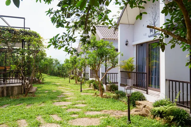 - Khuôn viên rộng lớn lên đến 6000m2 với view nguyên bản của ruộng núi, cho bạn trải nghiệm hoàng hôn tuyệt đẹp.