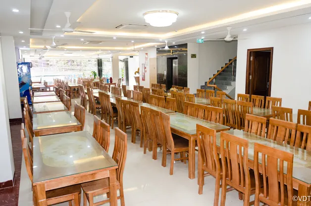 Khách sạn còn có nhà hàng phục vụ ăn uống tại tầng 1 và tầng 2 với sức chứa lên đến 300 thực khách. Không gian rộng rãi, tiện nghi đầy đủ, và bàn ghế sang trọng hứa hẹn đáp ứng mọi yêu cầu của thực khách.