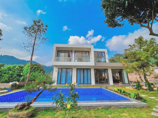 Villa Minh Trí Rose Garden tọa lạc chỉ cách trung tâm Hà Nội 40km và gần Hồ Đồng Đò. Villa kết hợp phong cách hiện đại với không gian xanh mát của cây cỏ, tạo nên một Minh Trí Rose Garden Villa đẹp tuyệt vời.