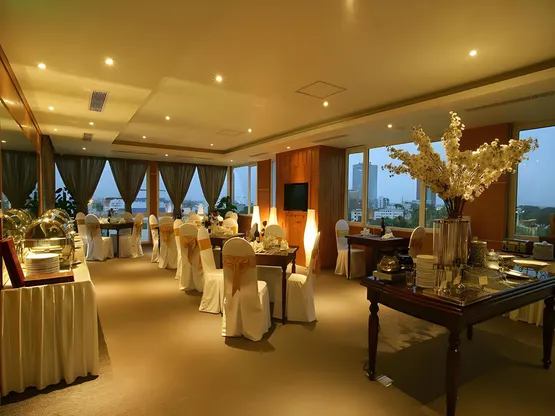 **Tiện Ích Khách Sạn 4 Sao:** The Palmy Hotel & Spa sở hữu các tiện ích tiêu chuẩn quốc tế 4 sao. Chúng tôi cam kết "tận hưởng sự hiếu khách" để mang đến cho bạn trải nghiệm đáng nhớ. Bữa sáng tự chọn với thực đơn đa dạng, từ món ăn truyền thống Việt Nam đến ẩm thực Châu Âu. Nhà hàng với tầm nhìn toàn cảnh Hồ Hoàn Kiếm sẽ là nơi bạn thưởng thức ẩm thực ngon miệng. Quầy bar trong khuôn viên khách sạn là điểm đến lý tưởng cho buổi tối của bạn.