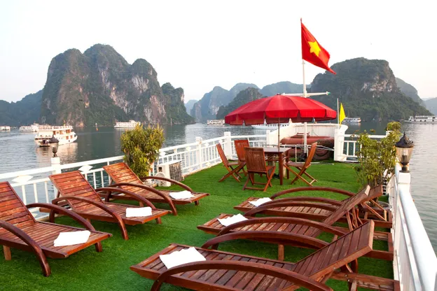 Du thuyền Marguerite là một biểu tượng sang trọng trên Vịnh Hạ Long, một Di sản Thế Giới được UNESCO công nhận với hàng loạt đảo đá vôi nhỏ tuyệt đẹp. Tại đây, quý khách có thể trải nghiệm việc ngắm nhìn cảnh quan tuyệt đẹp từ boong trên tầng mái, thăm các làng nổi địa phương hoặc chèo thuyền kayak khám phá các vùng nước xanh mát.