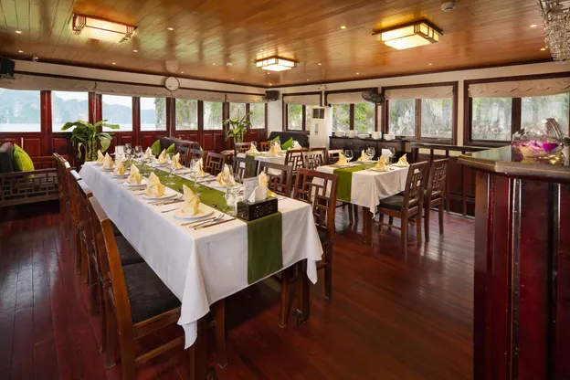 Du thuyền này có nhà hàng, quầy bar/khu lounge và quán cà phê. Khách được phục vụ bữa sáng miễn phí. Nhà hàng trên du thuyền phục vụ cả các món ăn Châu Á và quốc tế. Tiện nghi BBQ cũng được cung cấp tại đây.