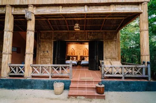 Các bungalow lợp mái tre truyền thống được trang bị nội thất đơn giản với quạt máy và màn chống muỗi. Du khách sẽ được tận hưởng các phòng nghỉ rộng rãi, khu vực tiếp khách cũng không gian làm việc rộng lớn.