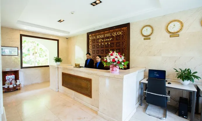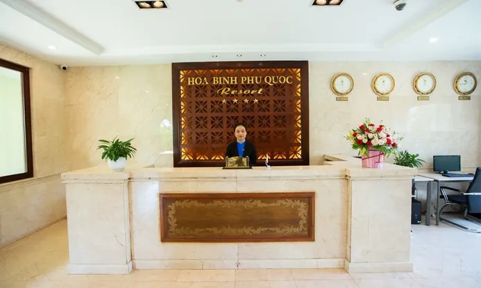 Chào mừng bạn đến với Hòa Bình Phú Quốc Resort - nơi trải nghiệm tuyệt vời và dịch vụ chất lượng đang chờ đợi bạn. Giờ check-in là 14:00 và check-out là 12:00 ngày kế tiếp.