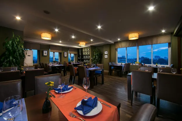 Anise Café trên tầng thứ 11 là nơi bạn có thể thưởng thức phong cảnh tuyệt đẹp của thành phố, đặc biệt là dòng sông Hồng. Nhà hàng trên tầng mái của chúng tôi phục vụ các món ăn phương Tây và Việt Nam trong không gian ấm cúng với tầm nhìn tuyệt đẹp.