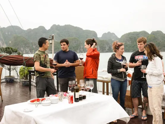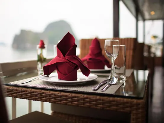 Du thuyền Hạ Long Aclass Stellar Cruise mang đến trải nghiệm ẩm thực phong phú với các đặc sản địa phương và các món ăn quốc tế đa dạng, kèm theo nhiều loại rượu vang và cocktail tuyệt vời. Quý khách cũng có thể tìm kiếm những nhà hàng gần du thuyền để thưởng thức hương vị đa dạng của địa phương.