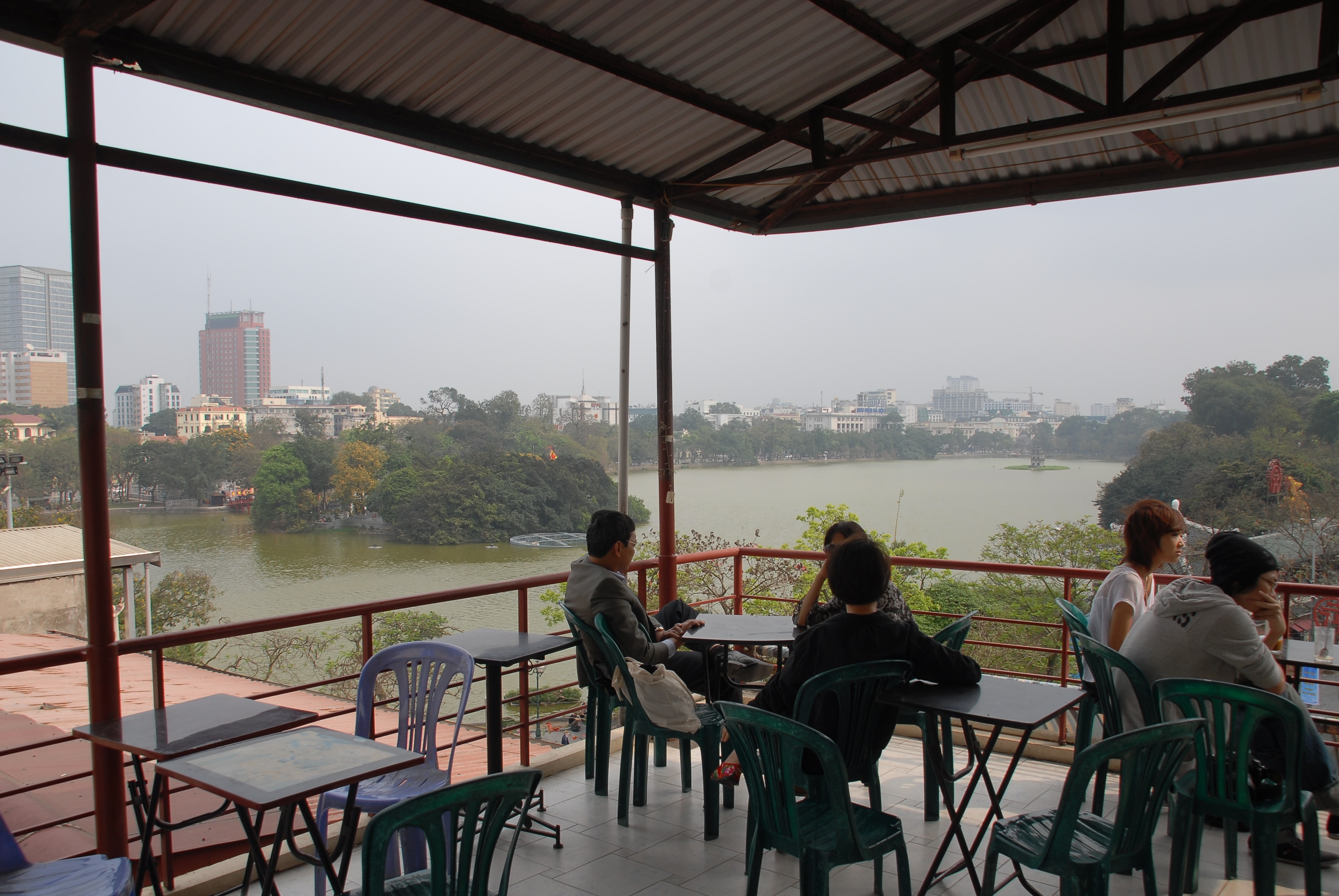 Mới nhìn qua, nếu không có người hướng dẫn, du khách sẽ khó mà tìm ra con đường dẫn lên quán cà phê độc đáo này. Bạn nên để xe ở gần hồ, sau đó đi bộ đến địa chỉ số 11 Hàng Gai, và "tự tin" bước vào con ngõ nhỏ giữa cửa hàng lưu niệm. Nếu không phải một nhóm lớn, bạn cũng có thể đỗ xe trong ngõ, nhưng hãy lưu ý rằng ngõ rất hẹp, chỉ đủ chỗ cho một chiếc xe máy nhỏ đi qua. Sân trong quán khá rộng rãi, và ban đầu là một khu vườn của một ngôi biệt thự cổ với nhiều chi tiết như cầu thang, cột nhà, mái hiên cổ kính, và rừng rêu xanh um tươi. Bạn có thể chọn ngồi ở tầng 2 hoặc tầng 3. Đây là một điểm hẹn lãng mạn và nổi tiếng để ngắm pháo hoa của giới trẻ Hà Nội. Đến đây vào mùa đông, hãy thử một cốc cà phê trứng thơm ngậy nổi tiếng. T