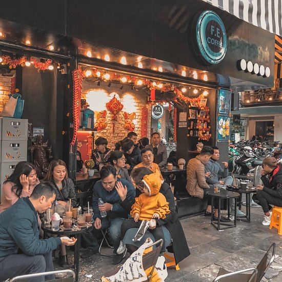 FE Coffee Hiện đại mang đặc trưng của những quán cà phê hiện đại và tạo nên một không gian hòa quyện tại ngã tư của phố Nguyễn Hữu Huân.