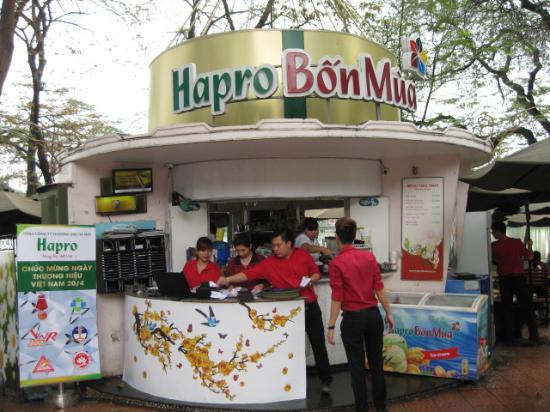 Cửa hàng kem Hapro Bốn Mùa nằm bên bờ Hồ Hoàn Kiếm, dưới bóng cây mát mẻ và có thiết kế sang trọng, tinh tế. Nội thất của cửa hàng được thiết kế với không gian mở, gần gũi với thiên nhiên, giúp khách hàng thưởng thức kem và đồ uống đặc trưng của Hà Nội. Đây là nơi thích hợp để thư giãn bên bờ Hồ Gươm và thả mình trong làn gió mát mẻ và tiếng lá cây rì rào.