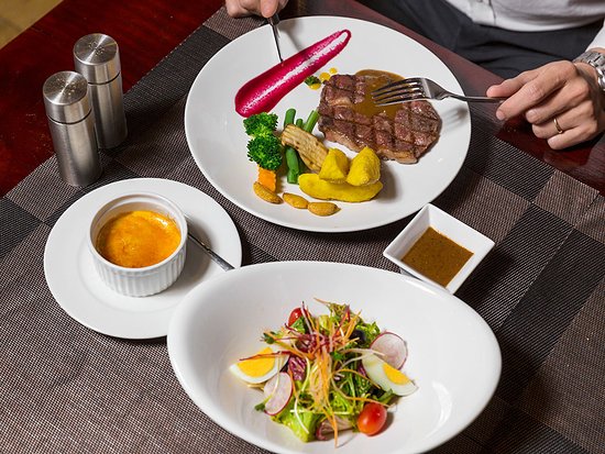 Nhà hàng Wine & Steak House Hồ Tây chuyên phục vụ ẩm thực phong cách Âu và cung cấp các loại rượu vang từ Pháp, Ý, Chile, Đức, Tây Ban Nha... Tại đây, món ăn ghi dấu lòng của ngay cả những thực khách khó tính nhất, đặc biệt là steak thơm ngon, mềm mại, và đậm đà với thịt bò Mỹ chất lượng cao. Thịt bò Mỹ nhập khẩu được tận tâm chế biến và tạo nên những bát steak ngon tuyệt. Khách hàng có thể tùy chọn độ chín phù hợp với khẩu vị riêng, và mỗi lát thịt luôn thơm ngon, tươi mát. Steak kết hợp với rượu ngon sẽ làm cho bữa tiệc thêm phần đặc biệt.