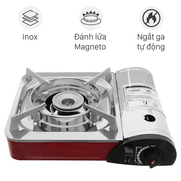 Bếp gas mini Duxton DG-290 gọn đẹp, sang trọng với thân bếp bằng thép sơn tĩnh điện màu đỏ, mặt bếp inox dày chắc bền bỉ, dễ lau chùi, không han gỉ giữ bếp mới lâu