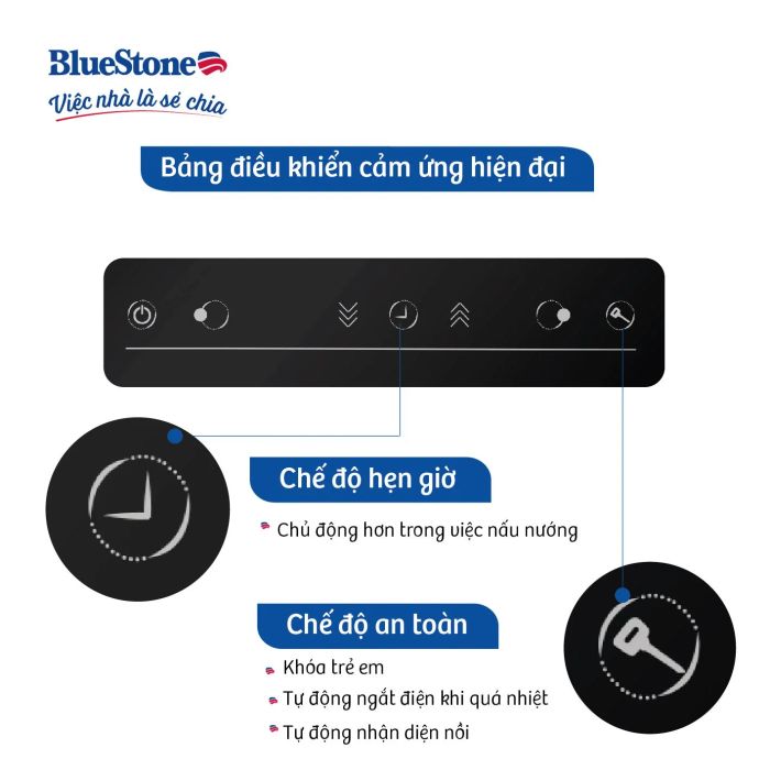 Bếp từ Bluestone có 2 vùng nấu với tổng công suất 5200W, giúp chế biến thức ăn nhanh, tiết kiệm được rất nhiều thời gian. Đây là một điểm tuyệt vời mà bếp mang lại cho người tiêu dùng, đặc biệt là những người bận rộn không có quá nhiều thời gian cho việc nấu nướng. Bếp từ tác động từ trực tiếp đến ở đáy nồi không cho thoát nhiệt ra không khí giúp cho nấu món nhanh hơn mà lại rất ít tiêu tốn điện năng, giảm chi phí sinh hoạt cho gia đình.