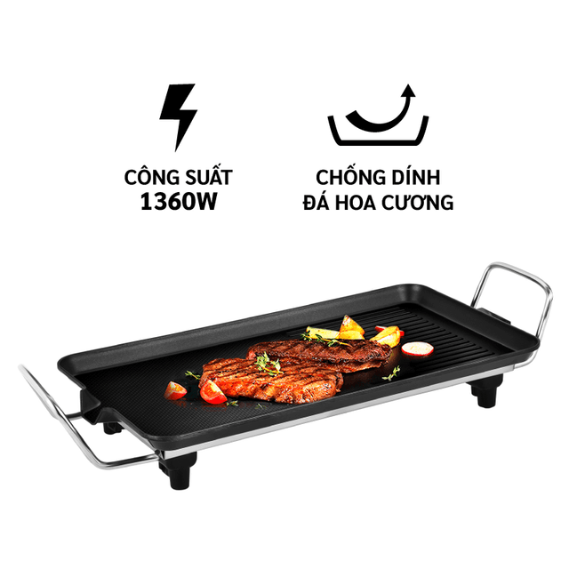 Sản phẩm với công suất 1360W cho thời gian nướng nhanh hơn, nhiệt tỏa đều giúp nướng nhanh, tiết kiệm thời gian,Bề mặt phủ chống dính đá hoa cương, siêu bền kháng khuẩn, không chứa PFOA.