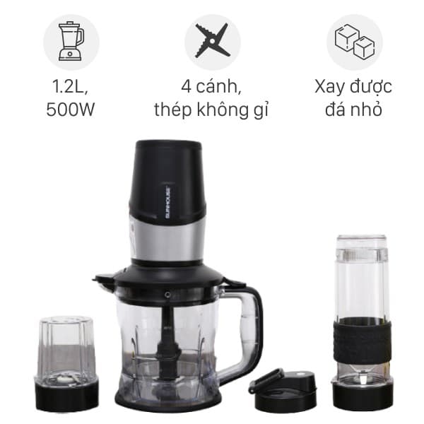 Máy xay sinh tố đa năng Sunhouse SHD5340 đen gồm bộ 3 cối xay tiện lợi, kiểu dáng và màu sắc sang trọng, bắt mắt, dễ dàng tạo điểm nhấn cho không gian sử dụng