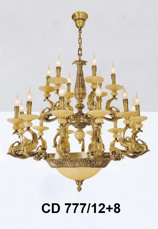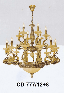 Đèn chùm đồng CD-777/12+6 mang đến vẻ đẹp tinh tế với chất liệu đồng cao cấp.