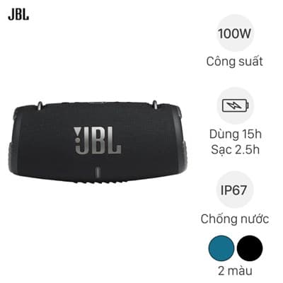 Loa Bluetooth JBL Xtreme 3 sở hữu vẻ ngoài đẹp mắt, chất âm sống động nhờ được trang bị công nghệ âm thanh độc quyền từ nhà JBL cùng mức công suất khủng lên đến 100 W, sản phẩm hứa hẹn mở ra những trải nghiệm thú vị cùng bạn bè trong những bữa tiệc.