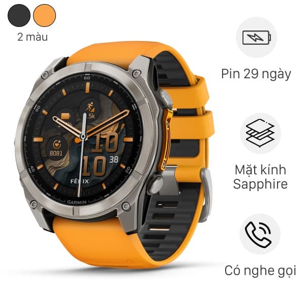 Garmin Fenix 8 Sapphire 51mm là người bạn đồng hành không thể thiếu của những tâm hồn ưa khám phá. Với thiết kế mạnh mẽ, bền bỉ và kho tàng tính năng hiện đại, chiếc đồng hồ này sẽ giúp bạn theo dõi sát sao hiệu suất tập luyện, hỗ trợ định vị chính xác và kết nối với thế giới xung quanh.