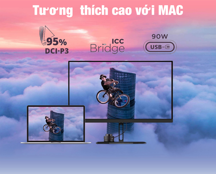 ColorPro với công nghệ và hiệu suất hình ảnh tuyệt vời là đối tác hoàn hảo của các máy Mac. Độ phủ màu 95% DCI-P3 cho gam màu chính xác như màn hình Retina của Apple. ICC Bridge của chúng tôi đảm bảo các cấu hình ICC tự động khớp với màu trên màn hình của bạn và Color Sync trong máy Mac của bạn cũng sẽ đồng bộ hóa màu sắc. Kết nối 90W USB-C truyền âm thanh, video, dữ liệu và sạc nguồn thông qua một dây cáp duy nhất nhưng vẫn đảm bảo tốc độ và sự gọn gàng ở mức tối đa