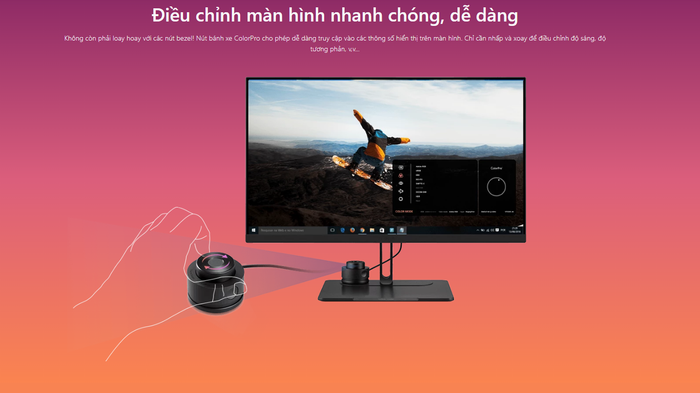 Độ nhạy, khả năng cân bằng và căn chỉnh hoàn hảo trong giao diện ColorPro Wheel. Điều chỉnh màu sắc ngay lập tức chỉ bằng một cú click hoặc xoay nút. Bạn sẽ ngạc nhiên trước cảm giác nó giống như chiếc màn hình là một phần của bạn.