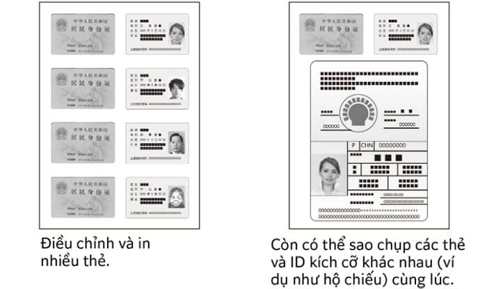 - Chế độ nhiều thẻ: Tự động chỉnh khi sao chụp nhiều thẻ ID với các kích cỡ khác nhau cùng lúc.
