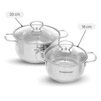 Bao gồm 2 nồi với đường kính 16 cm và 20 cm, phù hợp cho gia đình 2 – 4 người.